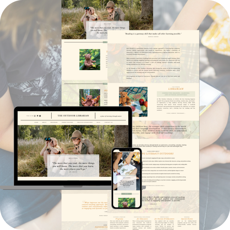 The Outdoor Librarian is calming, inviting, and perfectly aligned with my vision. Her ability to listen and translate my ideas into a beautiful, functional site was incredible. Through just a few in-person meetings, texts, and emails, she crafted a site that not only reflects who I am, but also showcases my program seamlessly. Her calm and professional approach made the entire process smooth and stress-free. I was surprised by how quickly she was able to get my website up and running, from start to finish.